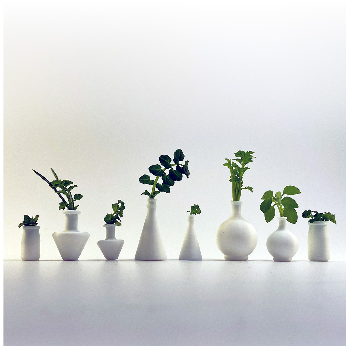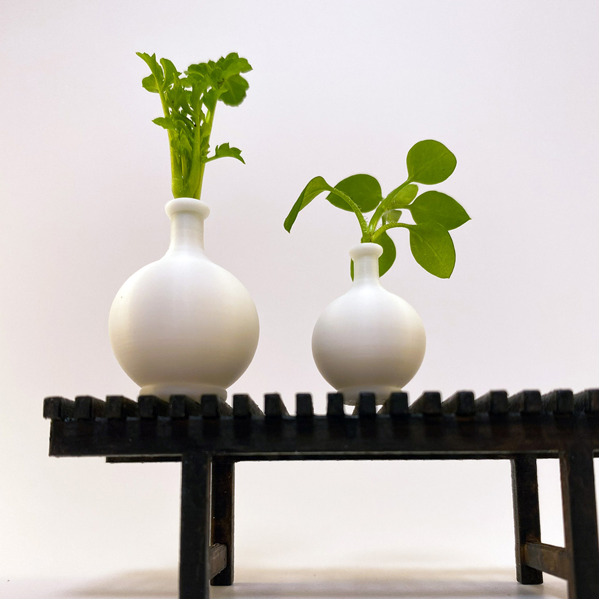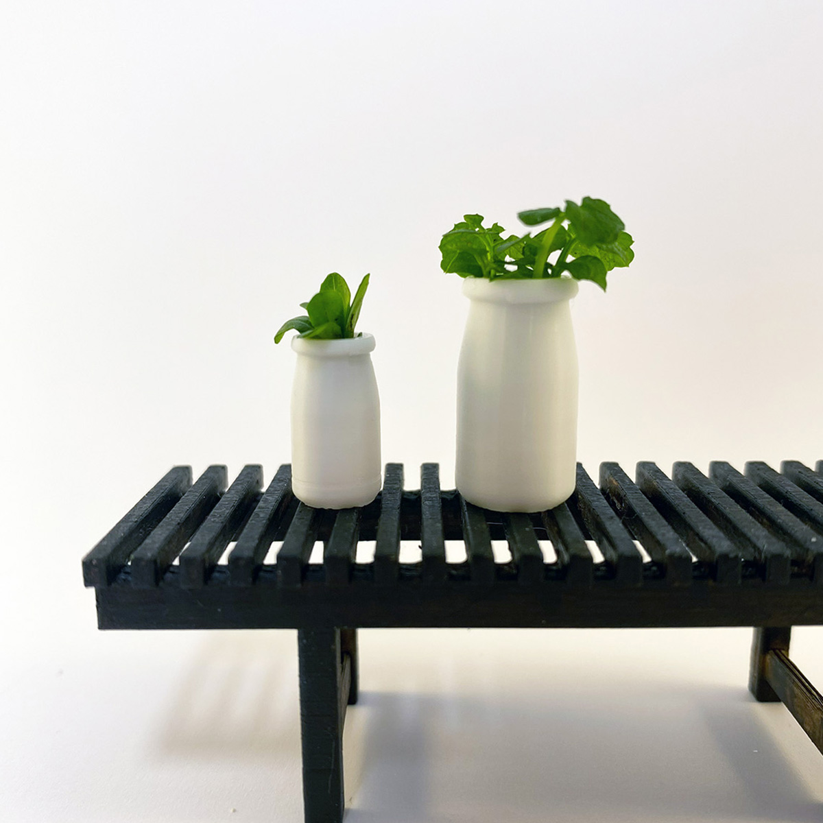 Some tiny vases for your mini home! This set includes four different vases in three different scale options. Use them to display your daintiest stems, or even as doll-sized potion or apothecary bottles.
